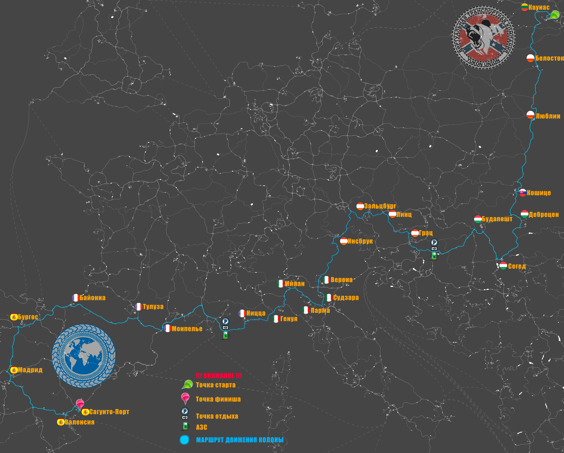 Маршрут конвоя: Движения колонны по маршруту определяет ведущий и может вносить свои коррективы, если на то есть веские причины